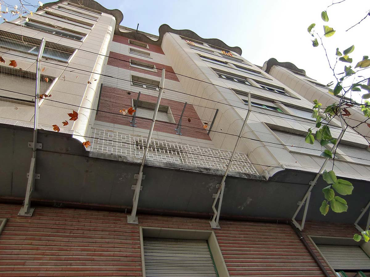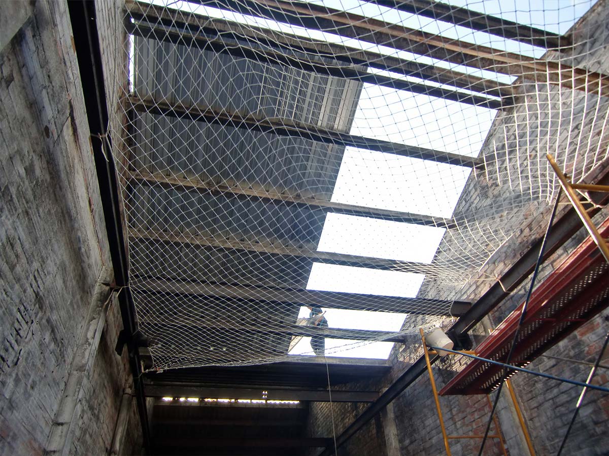 - Fachadas: Instaladas en fachadas de edificios, estas redes actúan como una barrera de seguridad que previene el desprendimiento de elementos decorativos o estructurales, protegiendo a los transeúntes y vehículos en la base del edificio.